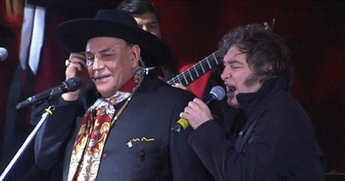 • El mandatario aceptó la invitación del cantante para subir al escenario del Festival de Doma y Folklore.