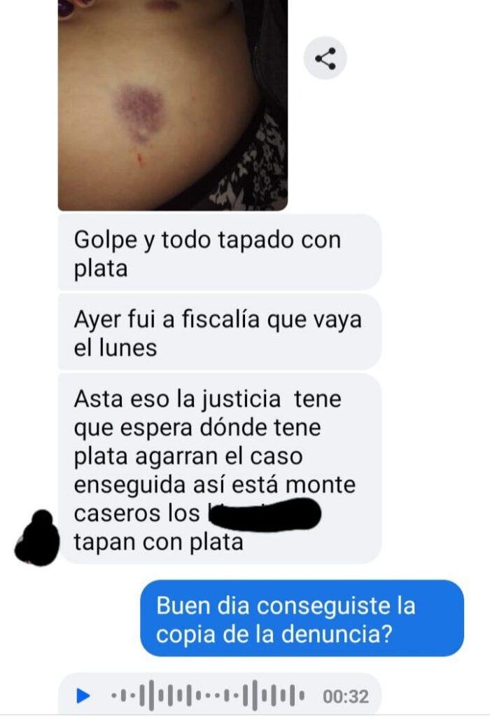 El hecho de que nos adelantemos a comentar es por la simple razón de impotencia, primeramente de como responden nuestras autoridades ante el angustioso momento de la doble violencia hacia una Mujer por no ser escuchada y también porque no queremos ser un eslabón mas de tapar cosas como estas siendo cómplices talvez o lamentar una muerte mas como tantas otras, claro que le aconsejamos poner todo en manos de la justicia y velamos porque encuentre una respuesta el lunes y de esa manera disponer de argumento con respaldo legal para hacerlo publico como nos dijo la señora.