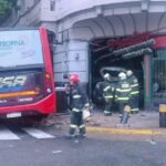 Violento choque en Constitución: un colectivo se subió a la vereda y un patrullero quedó incrustado en una pizzería